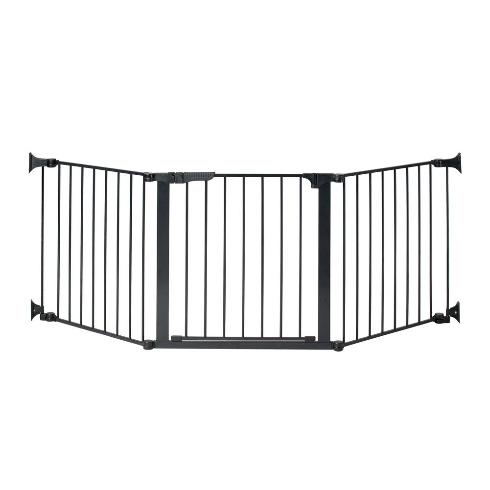 The Auto Close ConfigureGateTM provides maximum safety for use in any extra wide or odd shaped area. All joints rotate; setting individual sections to the ideal angle, and then easily lock in place for a secure attachment. The unique handle design on the extra wide door applies Magnet-Lock Technology, a dual magnet design that automatically draws the door closed and guarantees it locks each and every time! The ConfigureGate also has a hold open feature, that suspends the auto close function until the door is pushed closed. The original 3 piece ConfigureGate will fit an 86” opening. An unlimited number of additional 9” and 24” sections can be added to fit any desired length or to make a freestanding enclosure.