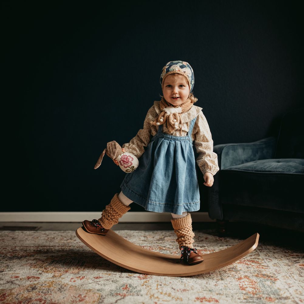 Watch your child’s imagination take over as the Kinderboard becomes a seesaw, balancing toy, slide, stepping stool, boat, resting nook and so much more! Originally introduced in Waldorf Early Childhood classrooms, the multi-use Kinderboard supports children’s mental and physical development while also serving as a versatile and sustainable option for explorative free play.