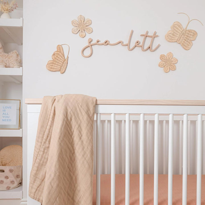 Simple and understated, Lil North's rattan wicker collection offers unique pieces, handcrafted for your nursery. Perfect to use on it's own or paired with others from the collection. An easy decor item, each wall piece features a small wooden plaque on the back to use to mount on the wall. These items also make great shelf decor or party accents!
