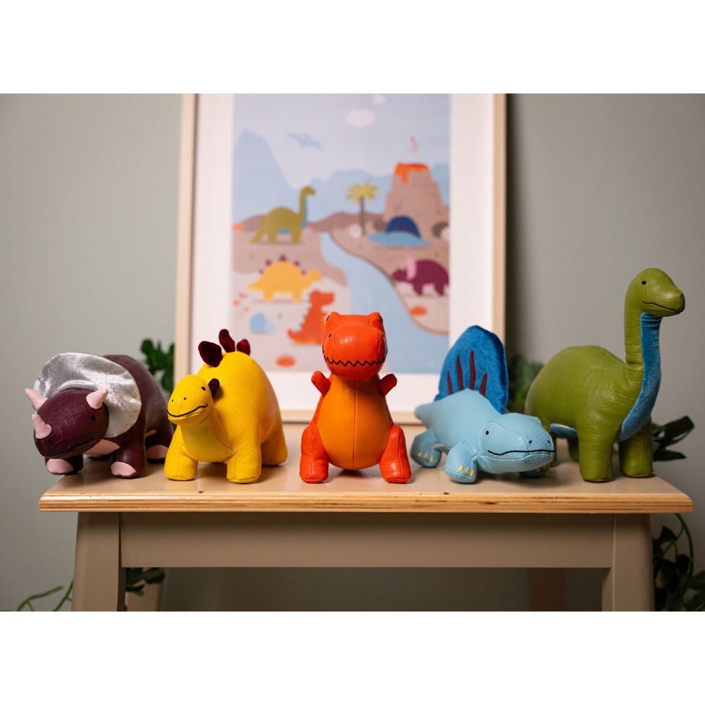 - Each dinosaur is made with vegan leather that is easy to clean, soft, and PVC-free.