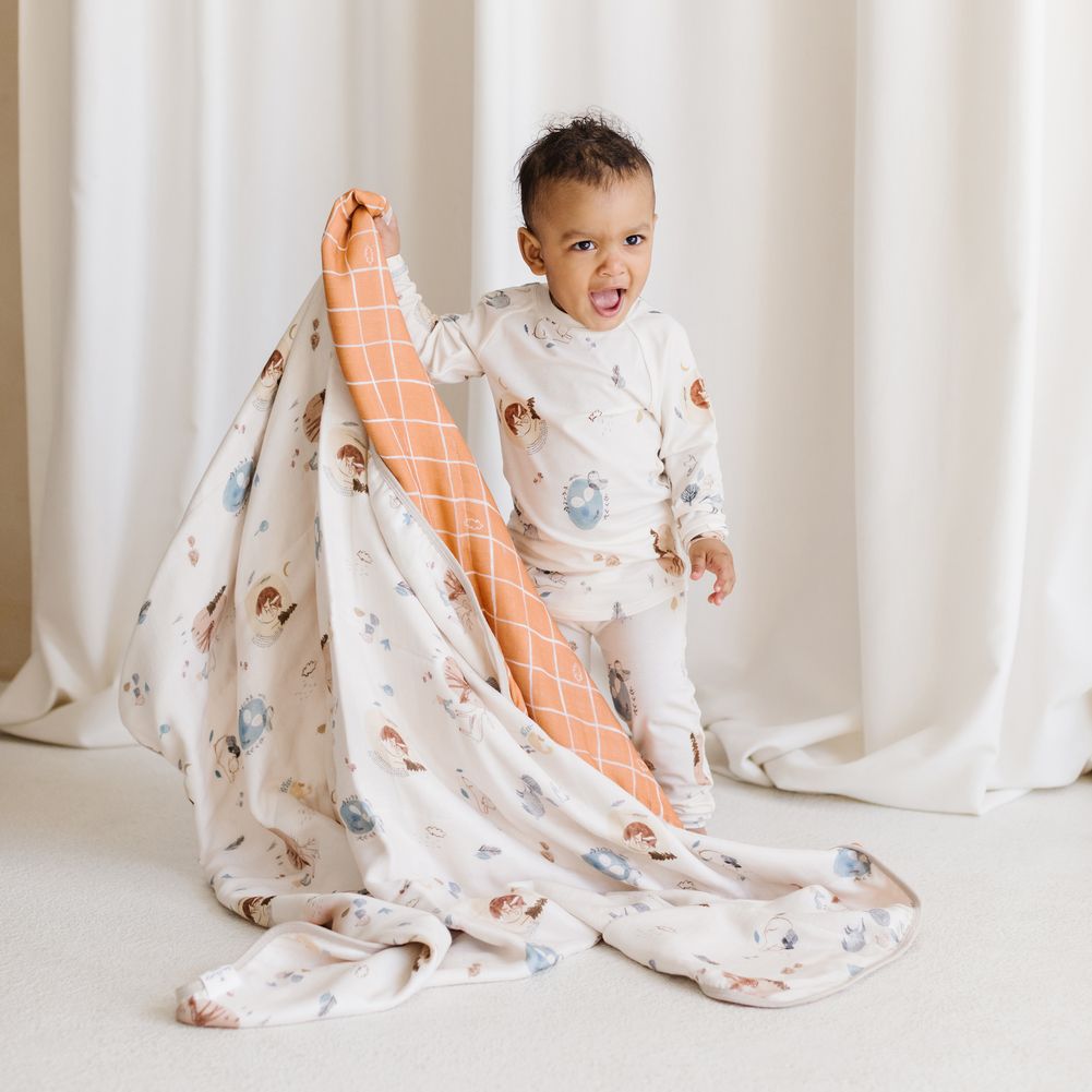 Loulou Lollipop's muslin quilts made from four layers of bamboo and cotton muslin fabric offer the perfect amount of breathable warmth and coziness to keep the baby comfortable and relaxed. This large reversible blanket is lightly quilted and features hand-drawn watercolor prints. Our multi-purpose muslin quilt blankets are generously sized, measuring 47" x 47" to grow with baby through the toddler years, and are great for tummy time, playtime, and as a stroller blanket.