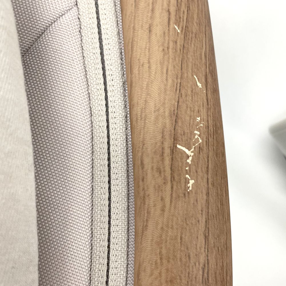 Condition: Packaging damaged. Item has been thoroughly inspected and cleaned. Some scratched on the frame and some slight discoloration on the fabric. Otherwise, item is in good condition.