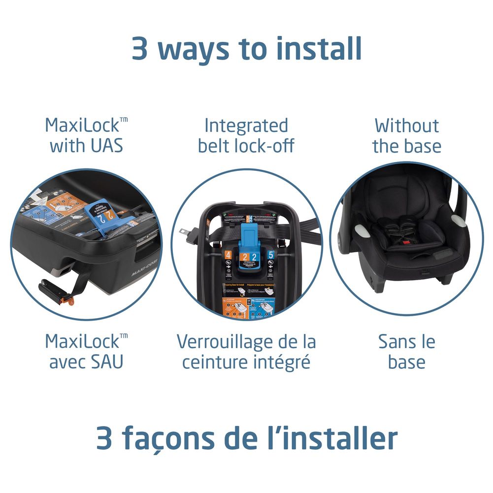 The intuitive base installation features MaxiLockâ„¢ technology with red-to-green tightness indicators, a 3-position adjustable base, a self-tightening UAS system, and a load leg which adds stability and limits movement in the event of a collision. Taxi-mode is simple and convenient with large, visible belt guides that show how to position the belt without using the base.