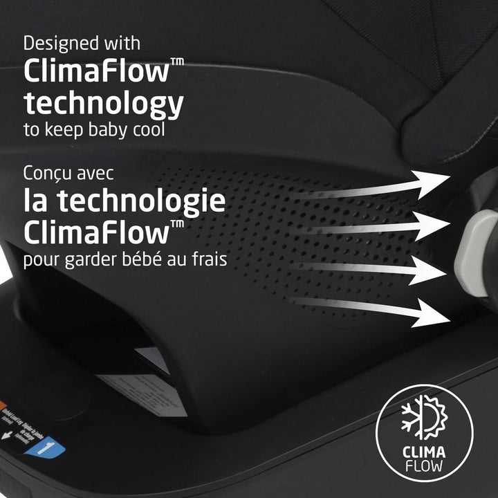 - Mico Luxe+ infant carrier with ClimaFlowâ„¢ technology to enhance baby's comfort by promoting cooler temperatures.