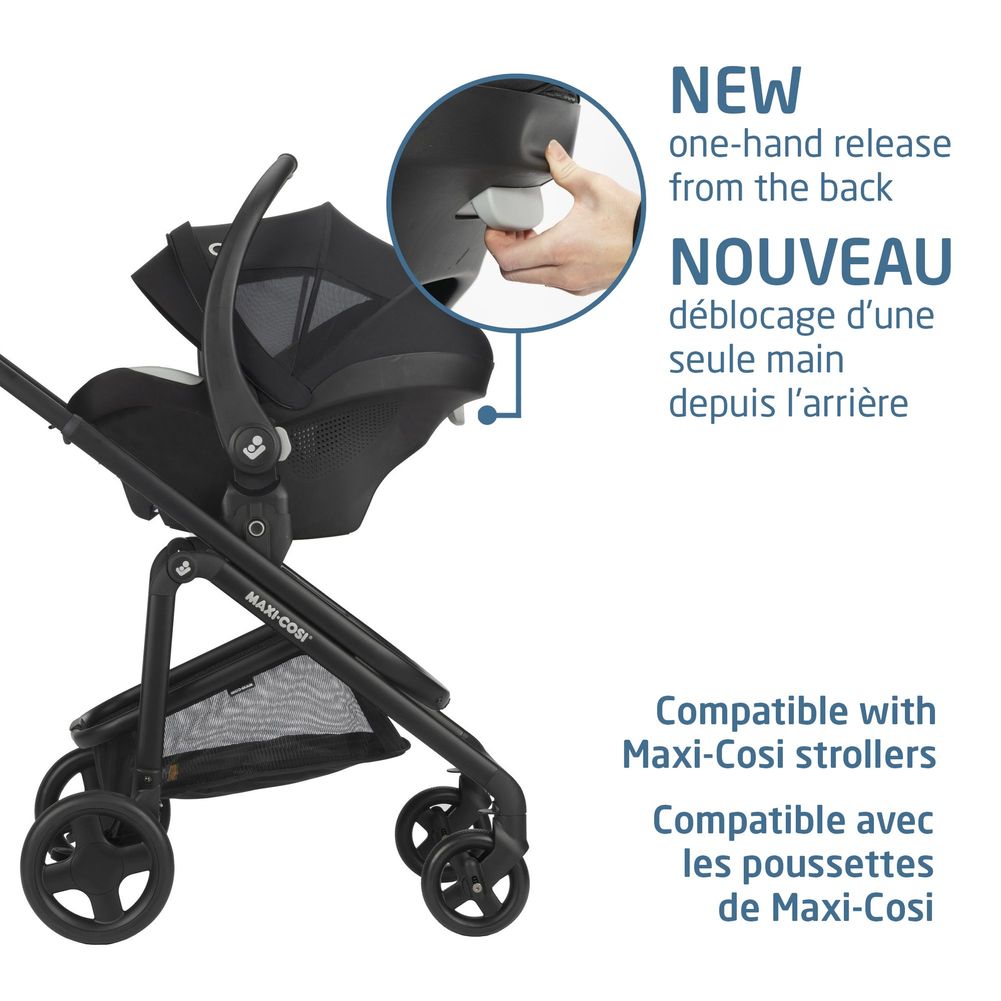 - Compatible with Maxi Cosi strollers to form a complete travel system that provides effortless portability and maximum style.