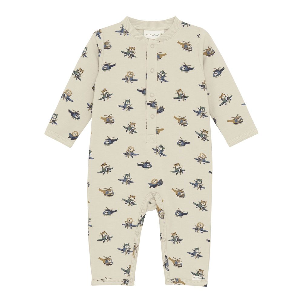 Onesie with all-over print from Minymo. Made from a soft and comfortable fabric for optimal comfort. Features a practical closure with snap buttons at the front and between the legs. Certified acc. to OEKO-TEX® STANDARD 100 Cert. No. 2276-364 DTI