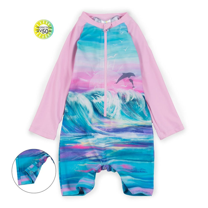 Nano One-Piece Rashguard Girls Short-Sleeve Swimsuit - Little Rose (6-9 Months)