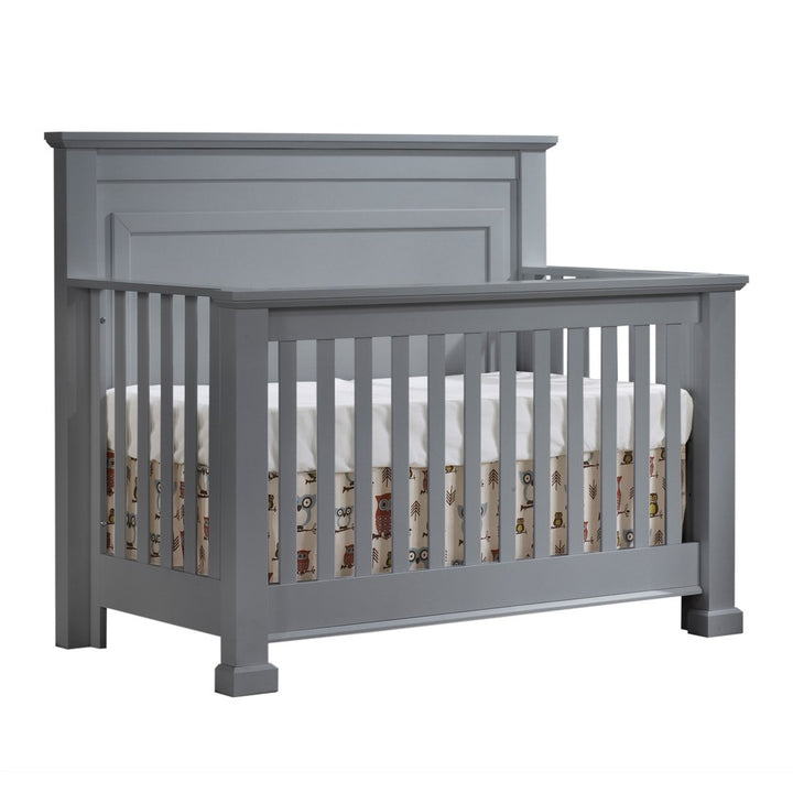 The Taylor ‘’5 in 1’’ Convertible Crib features massive posts, chunky tops and a contemporary framed back panel, infusing a sense of safety and security. This solid wood collection is available in White with Italian pewter handles or in the Graphite color featuring antique bronze handles. It also has a myriad of pieces to choose from and offers long term value with five configurations: crib, toddler bed, daybed, double bed or double bed with