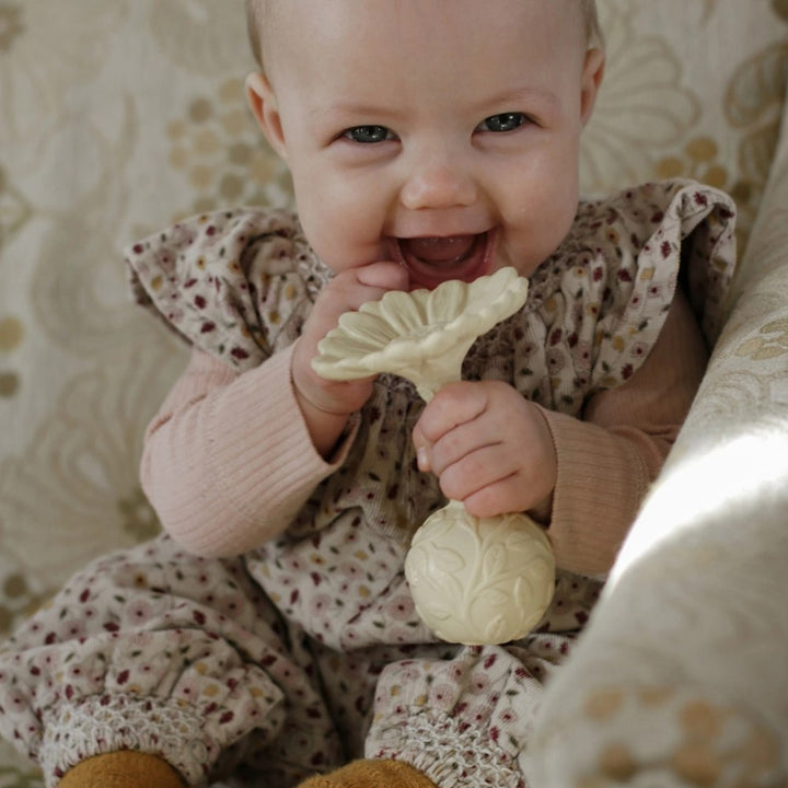 Your little one is now able to chew away on the elegant Natruba flower rattle collection.