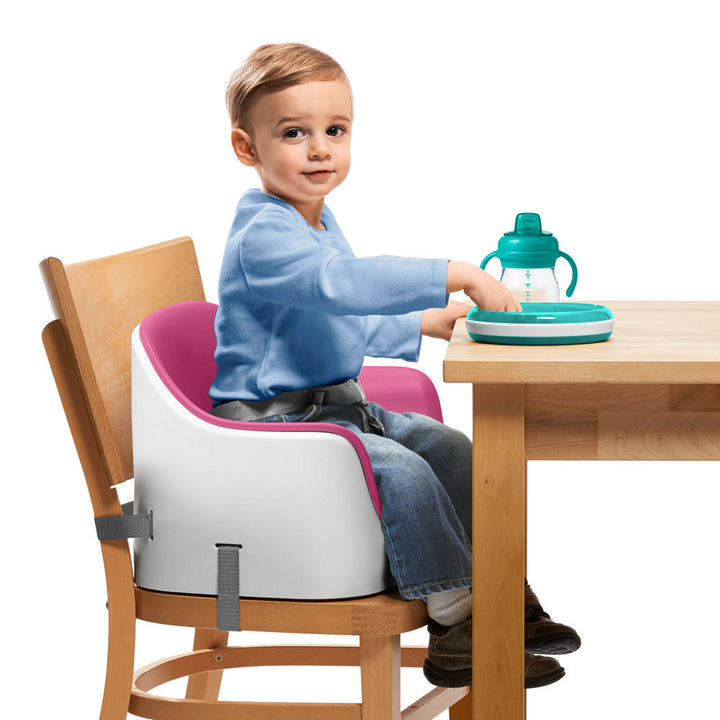 OXO Tot Perch Booster Seat helps little ones 15 months+ reach the table. Backrest supports tots, and 3-point harness keeps them safe. Booster folds with the push of a button...