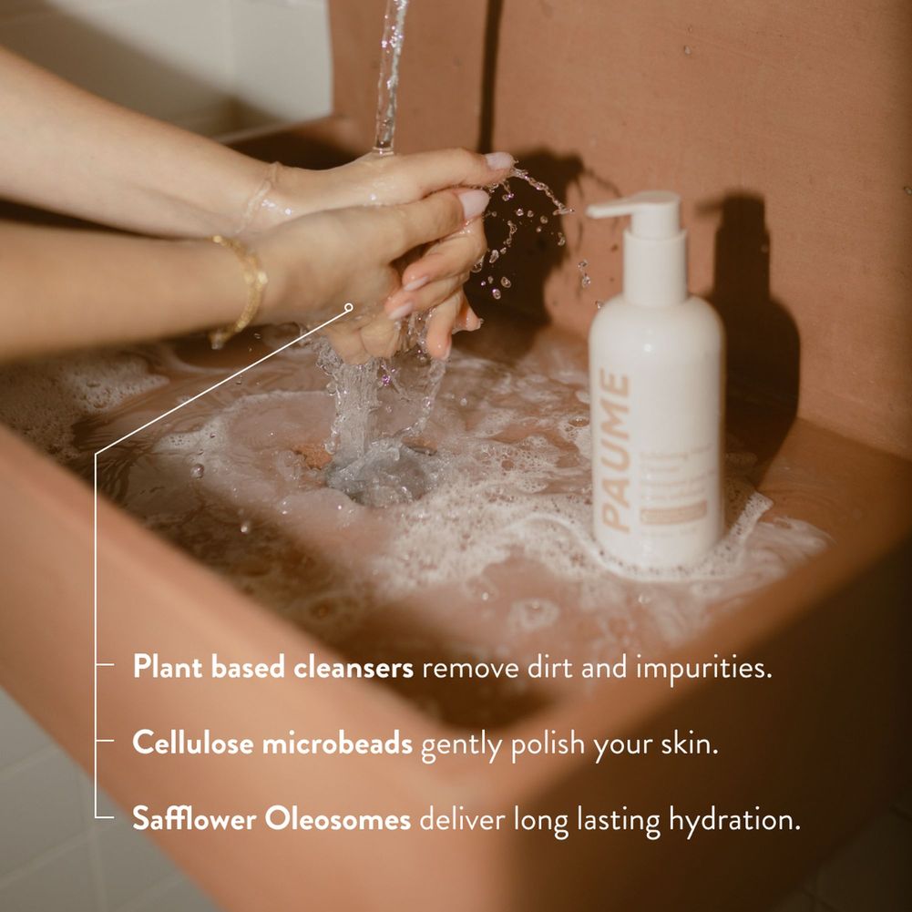 Paume Exfoliating Hand Cleanser elevates your hand washing routine with biodegradable micro-beads to gently polish as it cleans. Plant-based emollients deliver long lasting hydration to the skin. The result is clean, smooth, and nourished hands.