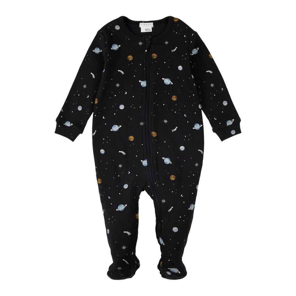 Petit Lem Organic Cotton Footed Sleeper in Galaxy on Black