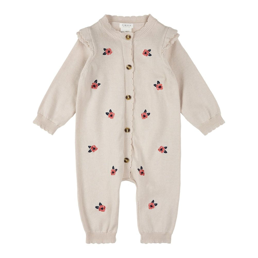 Petit Lem Organic Cotton Knitted Playsuit in Poppy Print on Beige