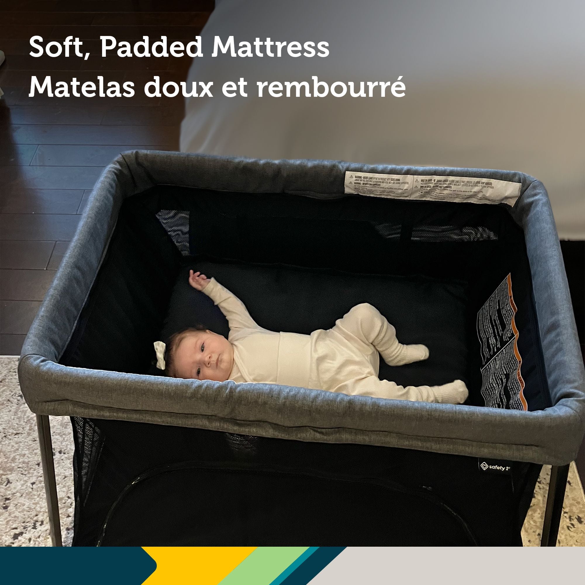 Meet the Dream & Go™ 3-In-1 Travel Crib, Playard & Bassinet—the ultimate sleep haven and play space for your little one. With overnight sleep readiness in both bassinet and crib modes, it offers a cozy and secure environment for rest. The soft, padded mattress ensures your child stays comfortable, while the zip-on bassinet offers an elevated resting spot that’s easy to access.