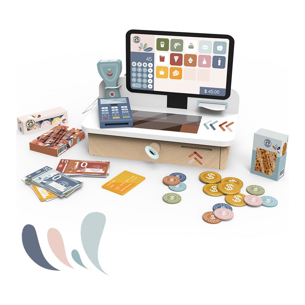 Perfect for pretend play at home or in a classroom, this FSC-certified wooden toy includes functional buttons, a drawer that opens, and accessories that encourage children to act out everyday scenarios. Whether they’re ringing up groceries or making change, kids will build early math skills, social interaction, and confidence through play.