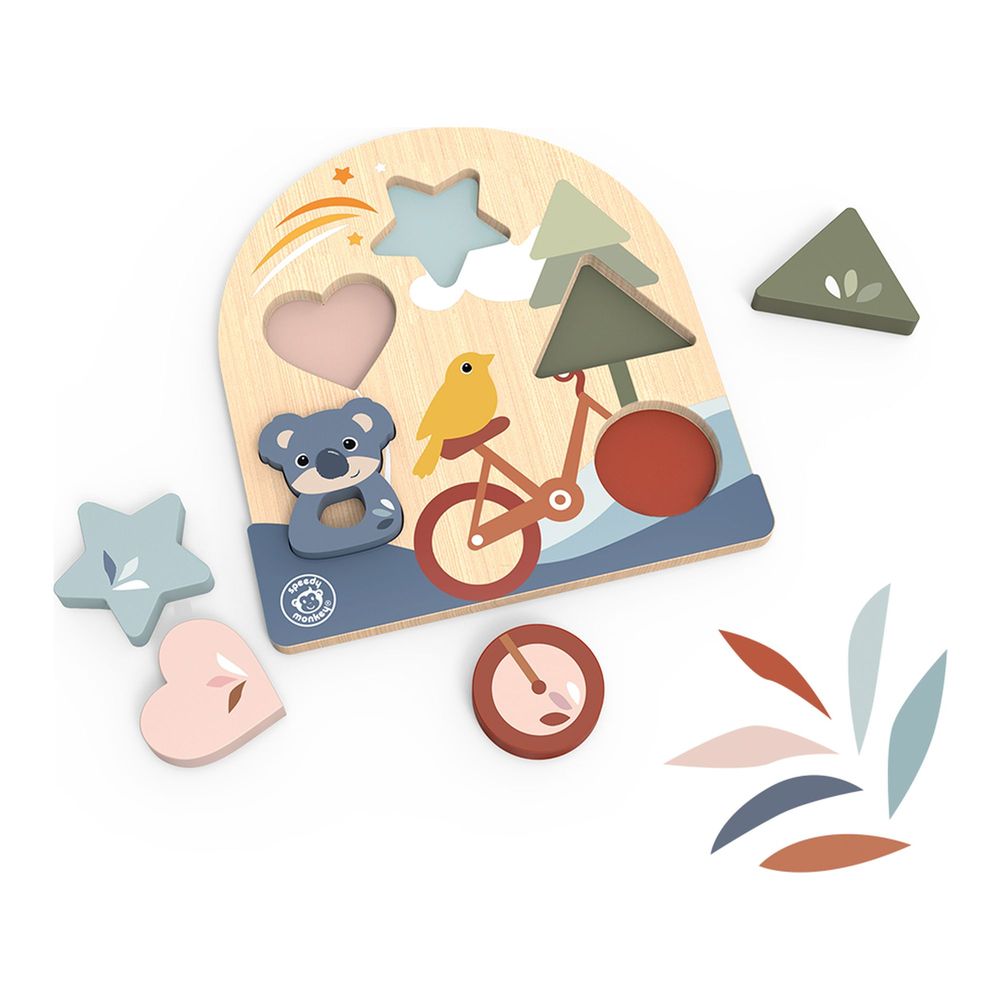 The Speedy Monkey Early Learning Puzzle turns play into progress, making every moment a step toward brighter learning! Hours of hands-on discovery with the Early Learning Puzzle, a colorful and educational activity designed to spark curiosity and build foundational skills in toddlers ages 12 months and up. This charming set includes 4 chunky wooden blocks, perfectly sized for little hands to grasp, stack, and place. As children match each piece to its spot, they naturally develop problem-solving abilities, shape and color recognition, and fine motor coordination.