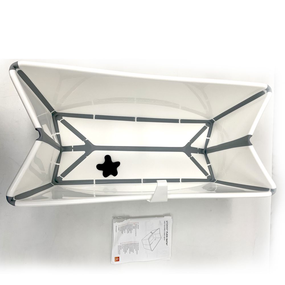 Stokke® Flexi Bath® is a foldable baby bath suitable from birth to four years. The space saving design makes it easy to store and convenient to use at home or when traveling, encouraging more shared bath time moments. The optional Stokke® Flexi Bath® Newborn Support provides additional comfort for newborn babies. Because Stokke are always striving to improve our products, we´re offering a heat sensitive drain plug.The plug works by turning colors, when the water gets warm giving parents a visual cue, letting them know that the water temperature is getting needs to be checked. Please note that the plug is not a thermometer. Always double-check the water temperature with your hand to ensure that it is the right temperature for your baby´s comfort and safety. If you are in any doubt, use a reliable thermometer for accuracy.