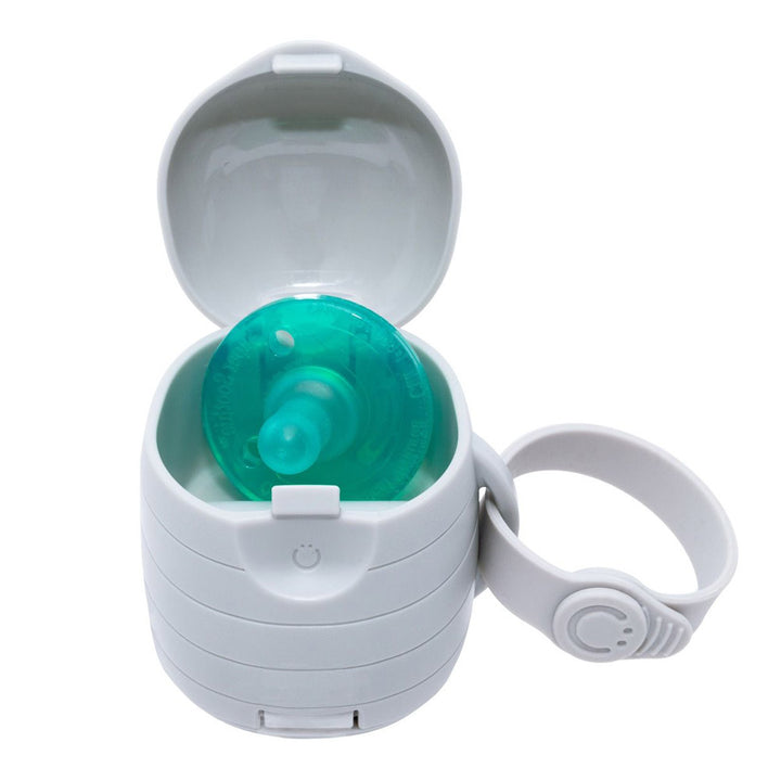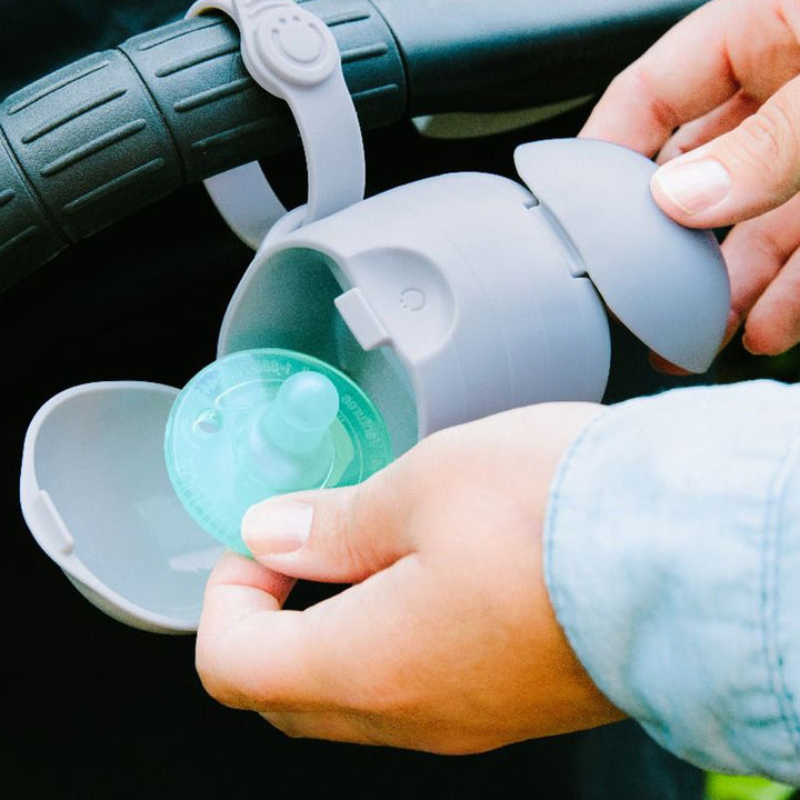 The Ubbi on-the-go pacifier keeps pacifiers clean and accessible while you’re out and about! Equipped with 2 compartments to keep the pacifiers separated and a silicone strap for easy hanging from a stroller or diaper bag. The pacifier holder is compact and easily snaps open and close and is easy to clean as well as dishwasher safe.