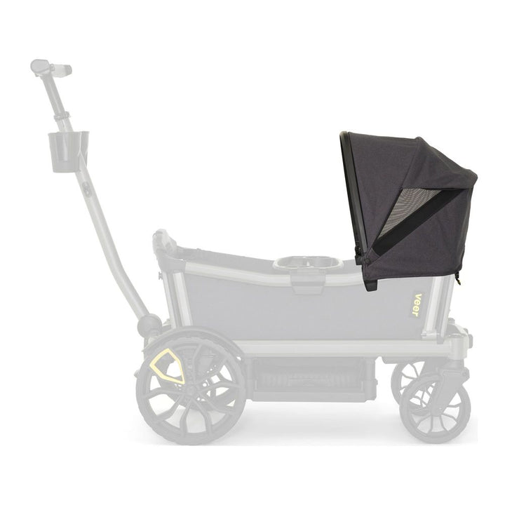 (1) Veer Cruiser City: Perfect for families that love to push on sidewalks, paths and through local attractions. Cruiser City features swivel wheels furthest from the handle, which enable it to be steered like a traditional stroller when pushing on smooth terrain. But don't worry, the handlebar can still drop into wagon mode for pulling over uneven terrain. Cruiser City comes equipped with 2 Cup Holders and a Drink & Snack Tray as well as seating for two.