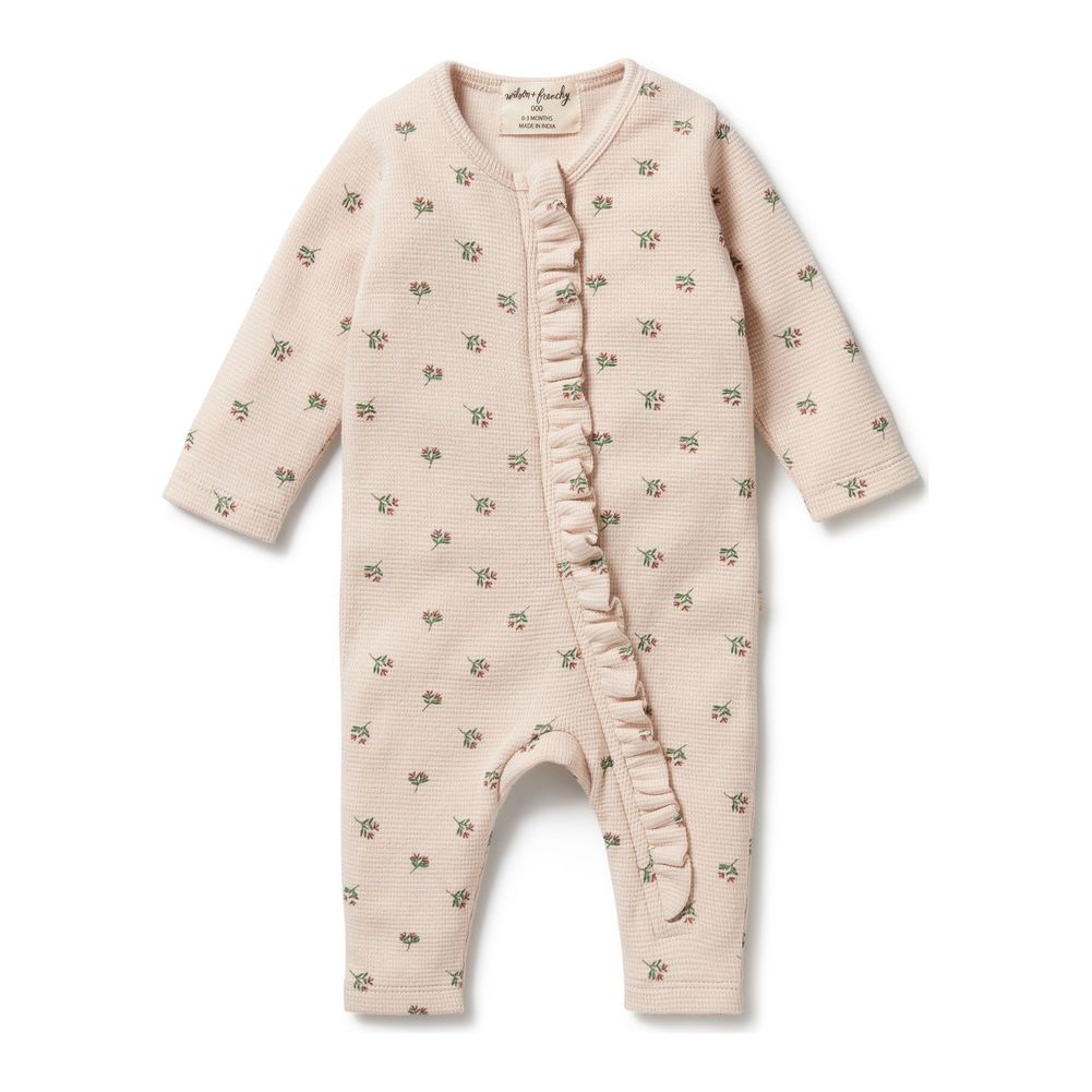 Keep your newborn comfy and cosy with this practical yet adorable zipsuit from Wilson+Frenchy. Crafted from organic cotton, it's gentle on baby's sensitive skin, and extra handy when having to make nappy changes. Features a gorgeous ruffle detail at zip and all-over print.